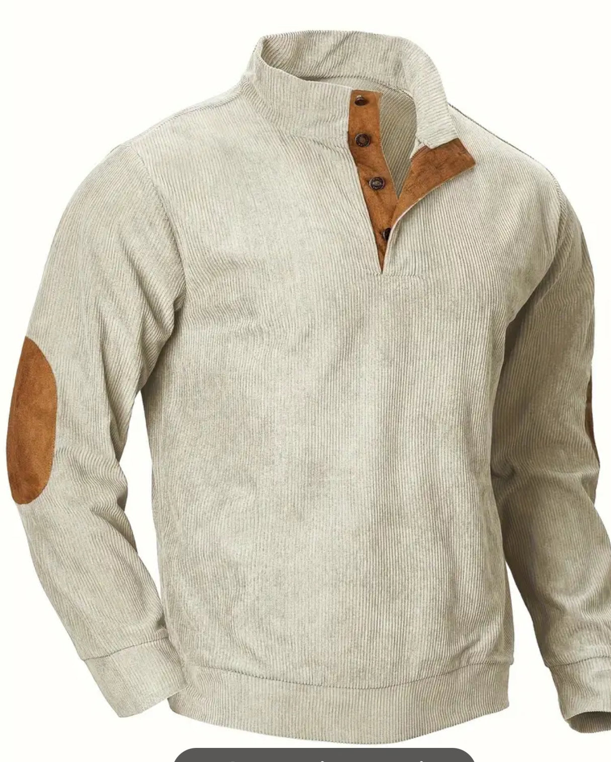 Corduroy Men's Casual Retro Stand Collar Thick Long Sleeve Henry Shirt